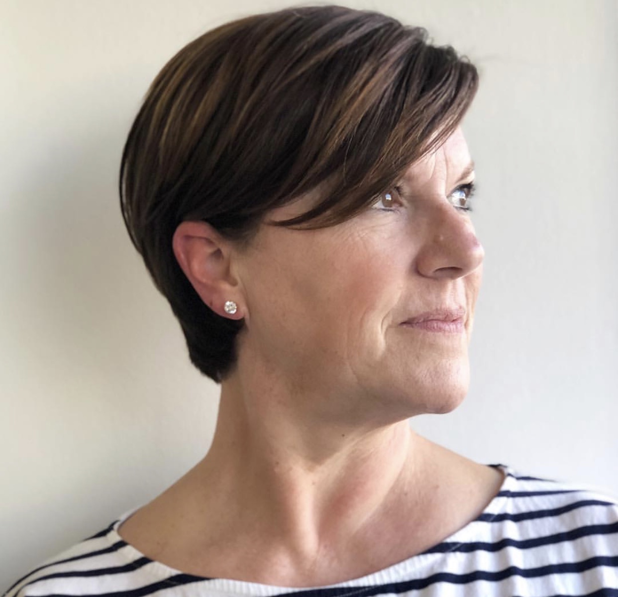 A chic short cut complements our client’s face perfectly! Balayage adds nuanced highlights and dimension to the textured cut. Gorgeous!
